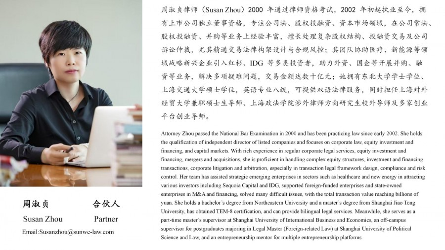 In just a few short years, SUNWELL has experienced rapid growth, with its partner team expanding significantly and its areas of expertise continuously broadening. Most of our lawyers are graduates of prestigious domestic and international law schools, having received education and earned professional qualifications in the United States, the United Kingdom, and other regions. Many of our lawyers also serve as adjunct professors and master's supervisors at renowned universities both in China and abroad. As a result, we have rapidly expanded our client base and enhanced our service capabilities, becoming a highly respected and widely recognized professional team, praised by clients across the market.