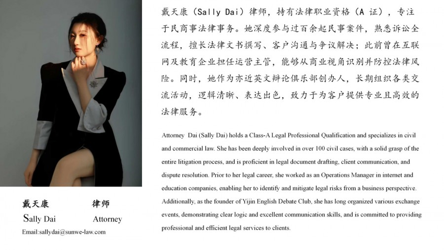 SUNWELL Law Firm, formerly known as Shanghai Shanyong Law Firm, has upheld the highest standards of professionalism and international expertise since its inception. With a strong focus on cybersecurity, data compliance, and personal information protection, we provide exceptional legal services that go beyond expectations, delivering outstanding value to world-class clients.